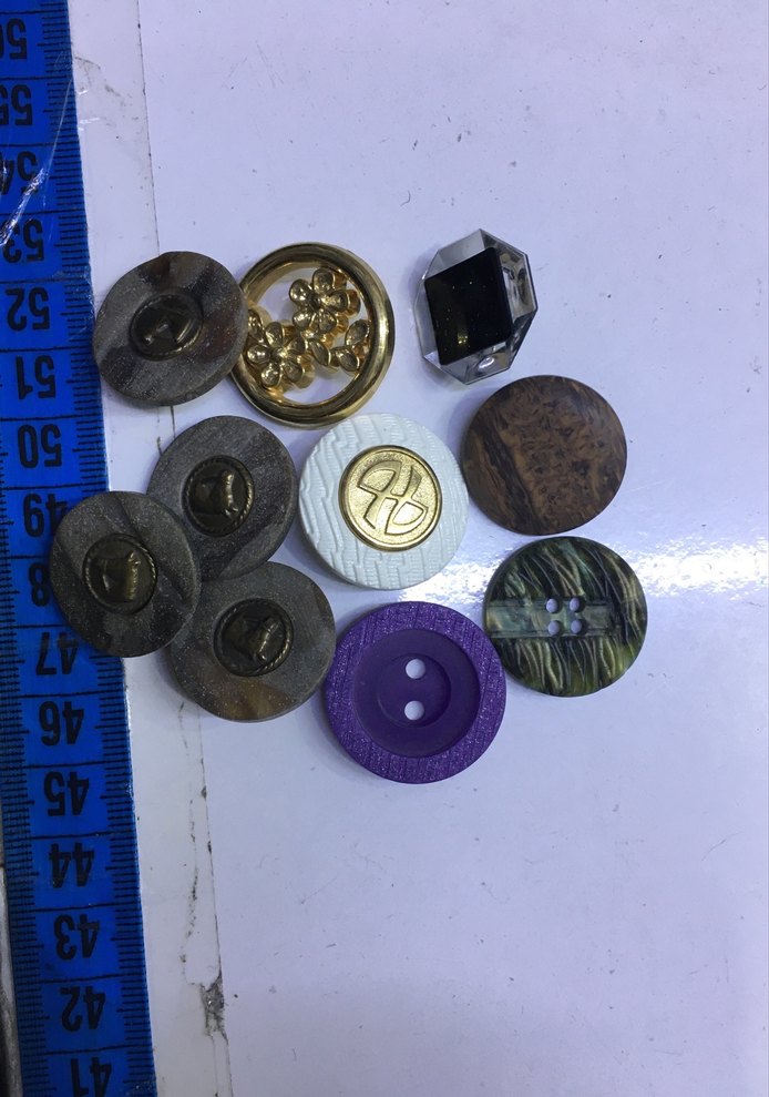 Farklı şekil, renk ve malzemelerde, ahşap ve metal detaylı bohem tarzı karışık düğme seti. El işleri için uygun.