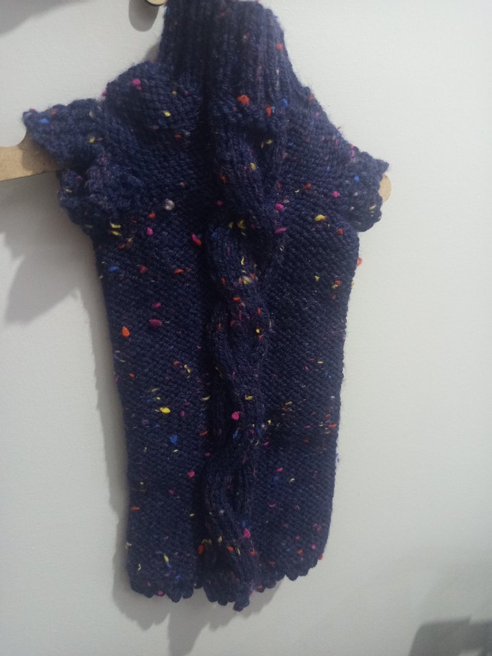 Bohem tarzı, kısa kollu ve uzun boylu triko hırka. Koyu çok renkli, boğazlı ve rahat bir tasarıma sahiptir. Günlük kullanım için uygundur.