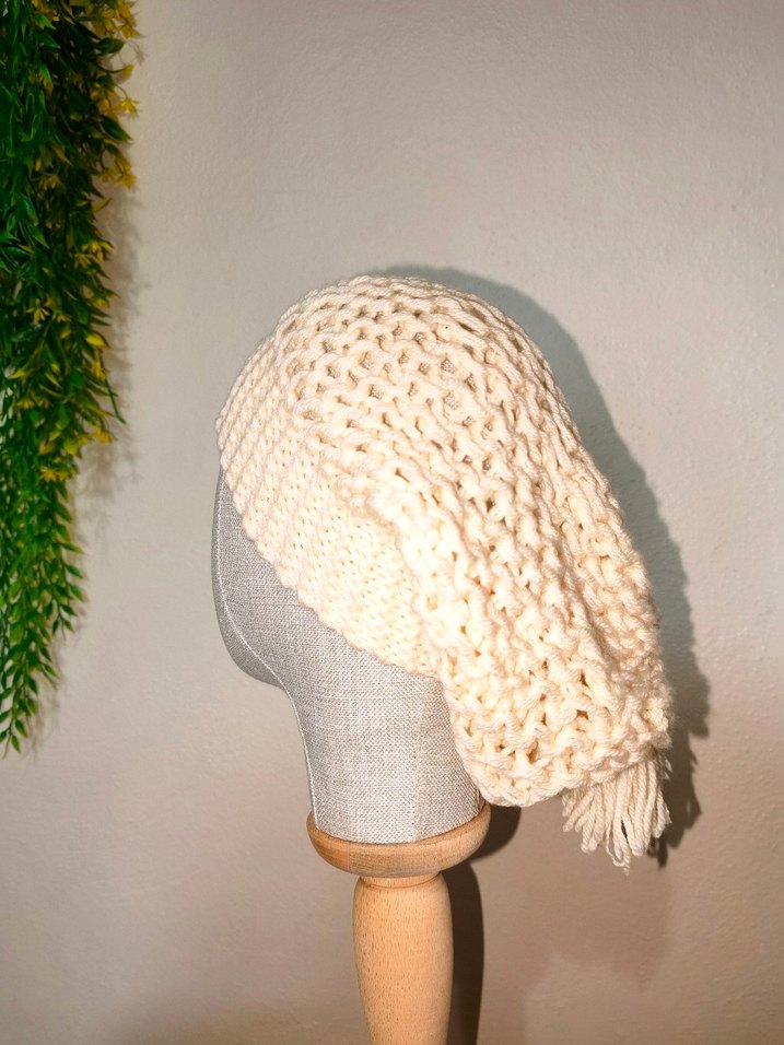 Bohem Tarz Krem Örgü Kadın Bere El Emeği Slouchy Bere