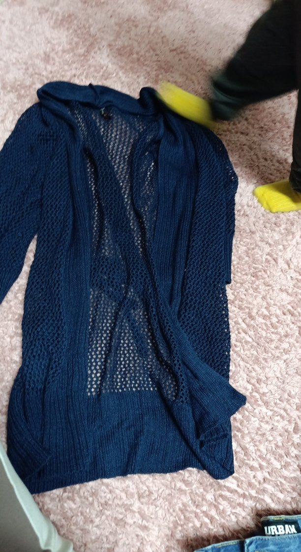 Lacivert renkli, uzun kollu ve boğazlı yakalı bu örgü kadın hırka, bol kesimiyle rahat ve bohem bir tarz sunar.