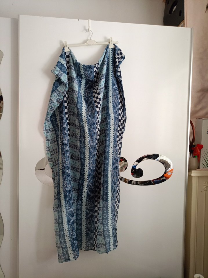 Bohem Tarzı Mavi Gri Dokulu Kadın Şal elbise pareo