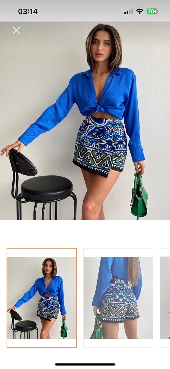 koyu mavi batik desenli bol kesim mini şort etek, sentetik kumaştan, günlük sokak stili için uygundur.
