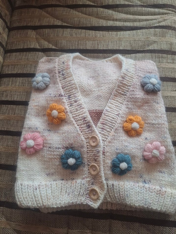 Bohem Tarzı Nakışlı Kız Örgü Yelek