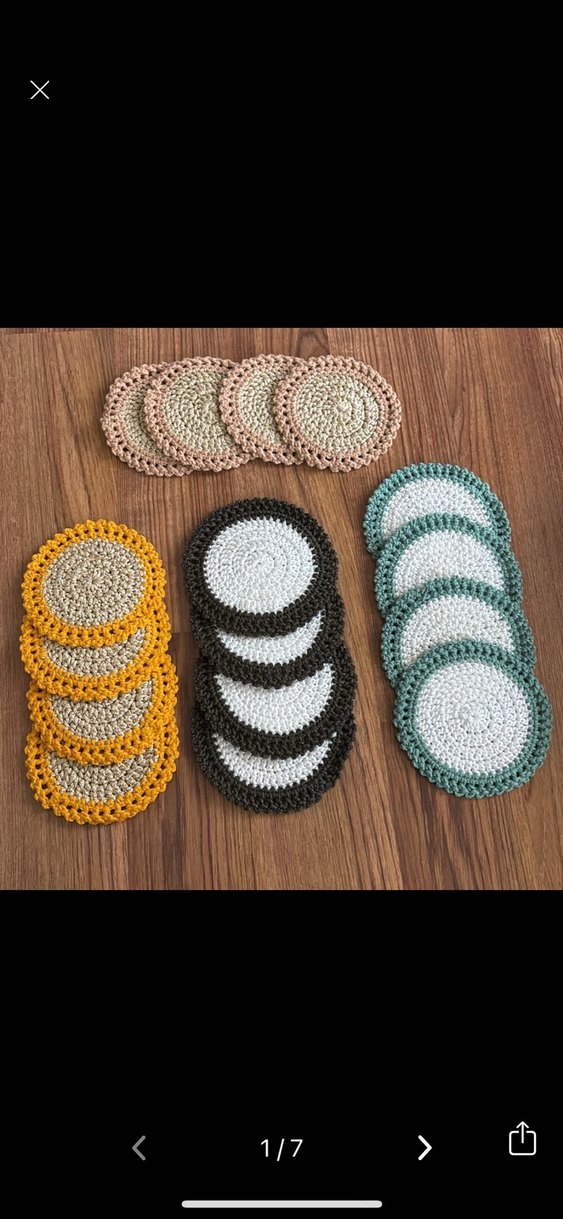 Farklı renklerde, bohem tarzda el yapımı örgü bardak altlıkları seti, yüzeyleri korumak için ideal. Fiyat dörtlü olarak belirlenmiştir.