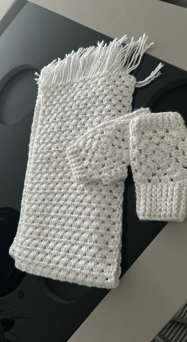Yumuşak dokulu, beyaz örgü kadın eldiveni, bohem tarzıyla rahat ve sade görünüme uygundur.