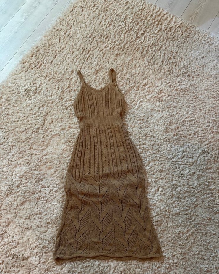 Bohem Tarzı Örgü Kahverengi Uzun Elbise