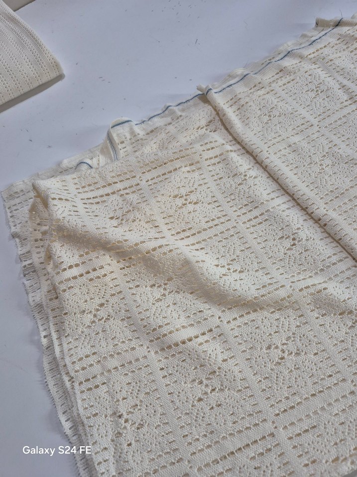 Doğal krem renginde, bohem tarzı örgü kumaş, detaylı tığ işi desene sahiptir. Yumuşak dokuludur, yaratıcı projeler için uygundur. hazır örgüdür
