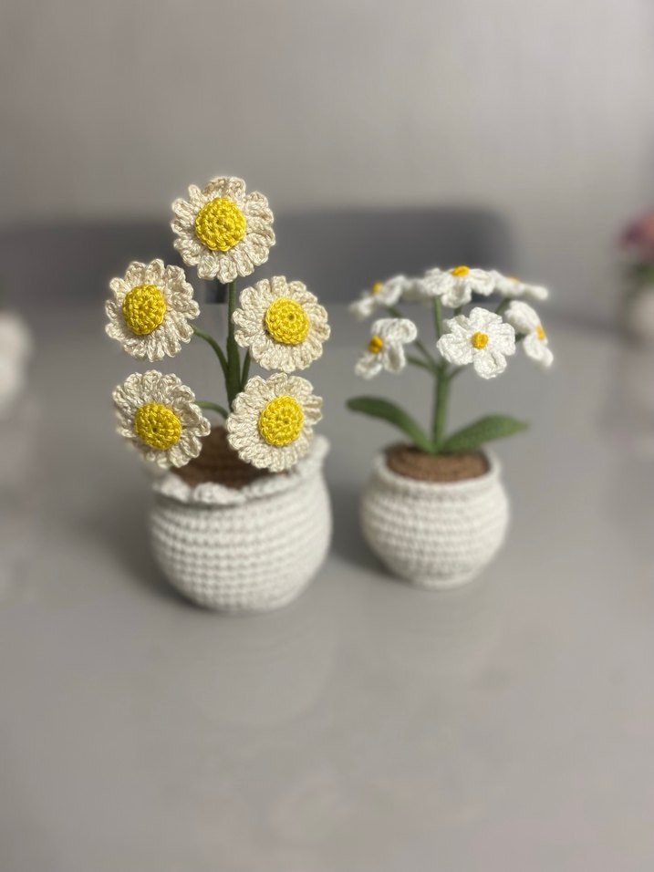 Bohem Tarzı Örgü Saksıda Beyaz Papatyalar