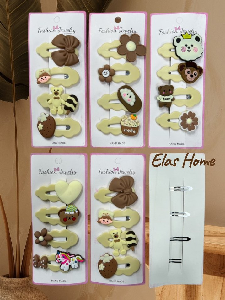 Pastel bej renkli elastik çocuk tokaları seti, fiyonk, çiçek ve hayvan desenleriyle el yapımıdır. Bohem tarzı detaylar içerir.