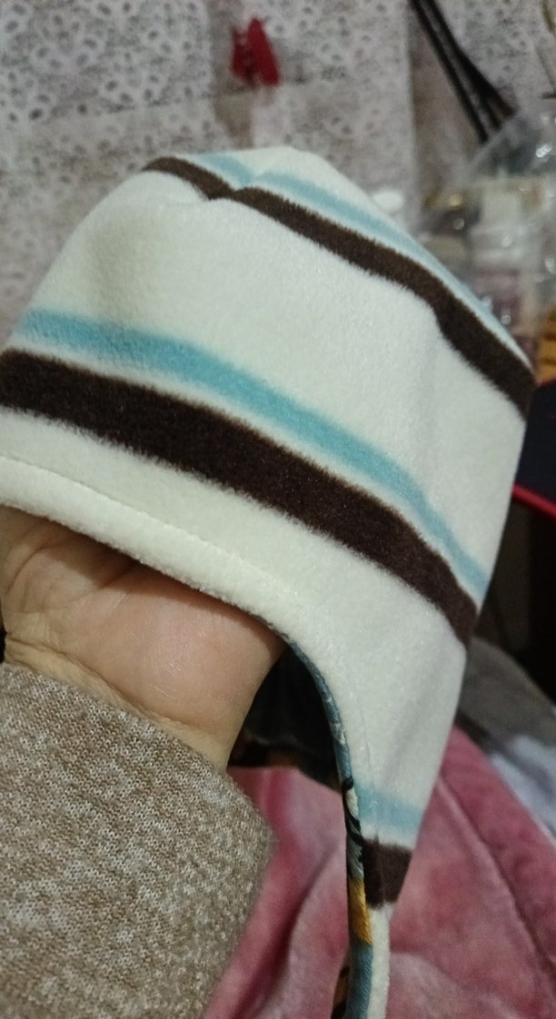 Yumuşak polar kumaştan, astarı, kahverengi, açık mavi ve krem çizgili erkek çocuk bere. Bohem tarzına uygun, rahat ve örgü görünümlü. Kendi üretimım. 3 adet var.