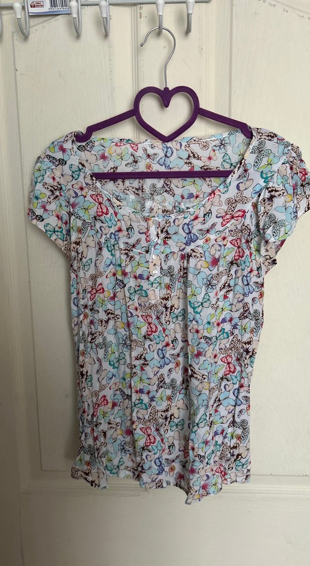 Renkli baskılı, dantel detaylı, yuvarlak yaka, kısa kollu, bol kesim midi boy bluz. Bohem tarz için uygundur.