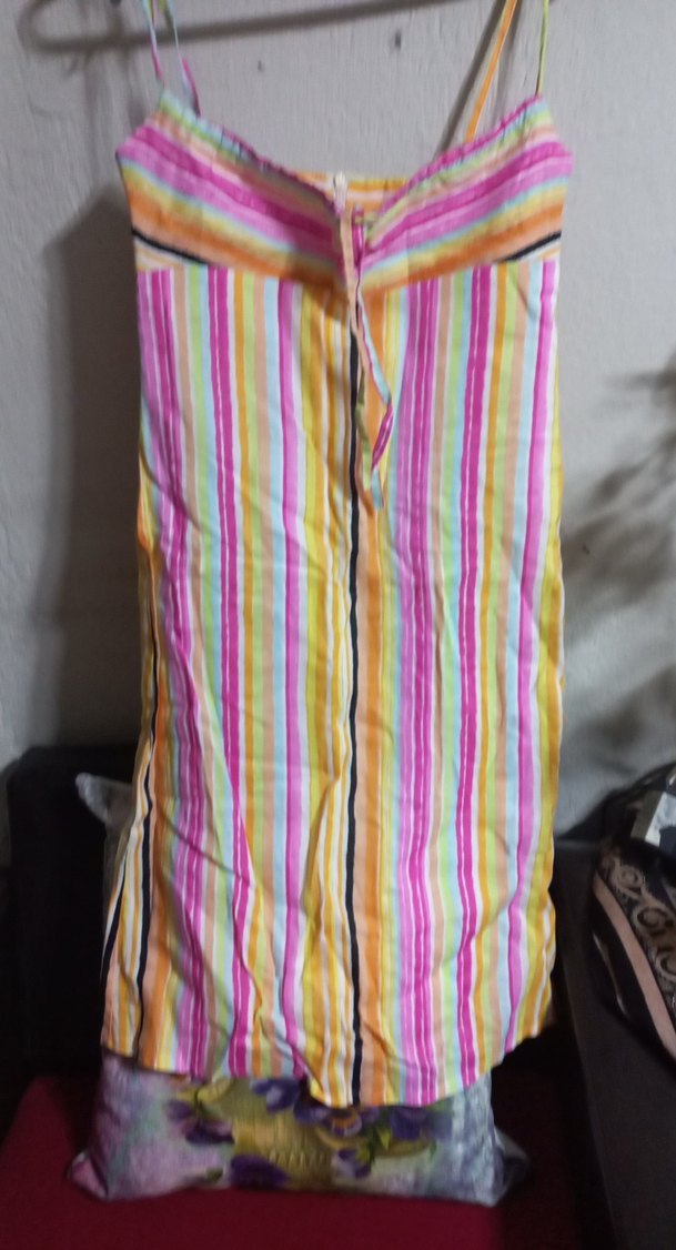 Pastel renklerde çizgili, piliseli, bol kesim uzun hamile eteği, sentetik kumaştan bohem tarzında.
