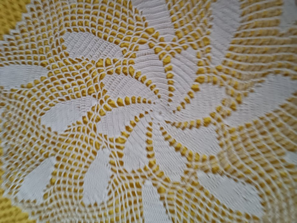 El yapımı, bohem tarzda, beyaz ve sarı renklerde detaylı dikişlerle işlenmiş desenli bir parça.
