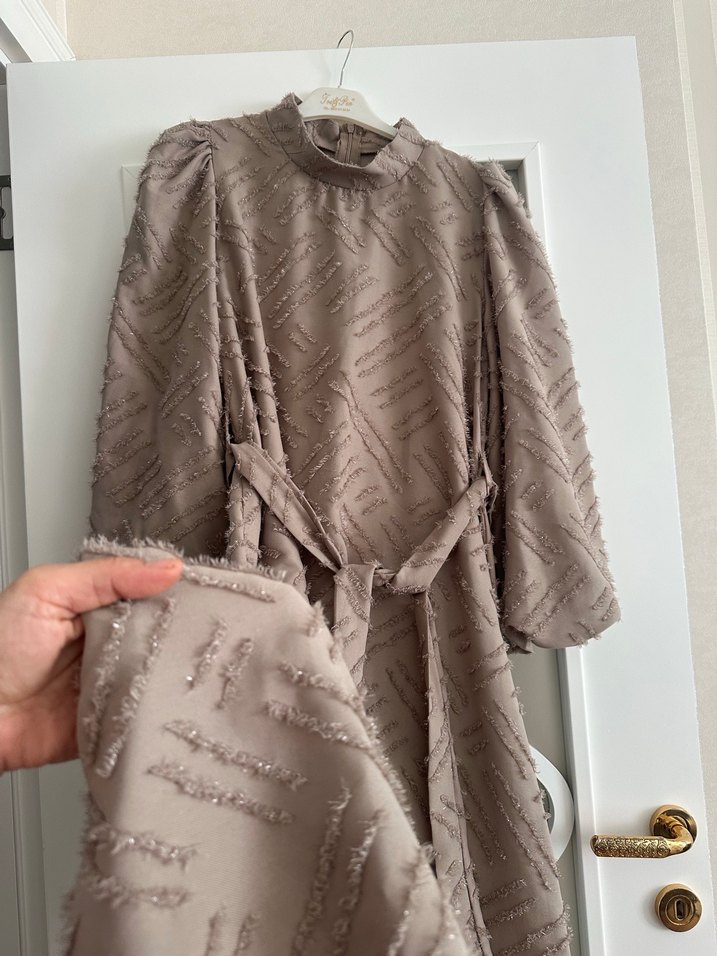 Nakışlı detaylara sahip bej bohem tarzı elbisedir. Kuşaklı ve uzun kollu, rahat bir kullanım sunar. Yumuşak ve şık kumaşıyla konforludur. Özel günlerde bile giyebileceğiniz kadar şıktır. Sadece 1 kez giyildi. 40-44 arası bedenlere uygundur.marka temsili
