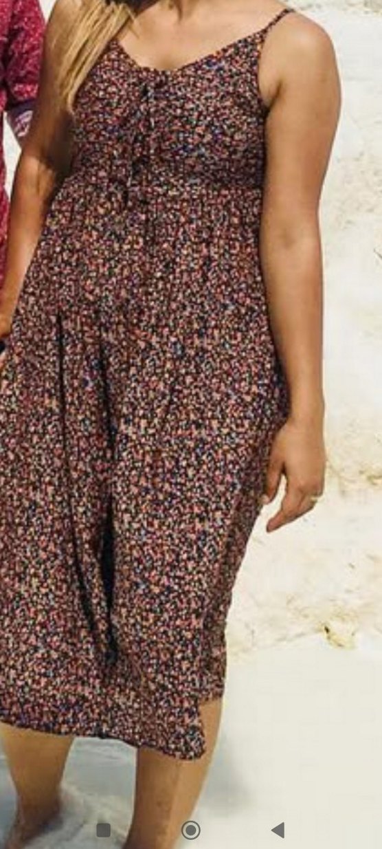 Uzun askılı, straplez kahverengi elbise, bol kesim ve drapeli detaylarla, yumuşak sentetik kumaştan üretilmiştir. Günlük kullanıma uygundur. marka temsili tertemiz