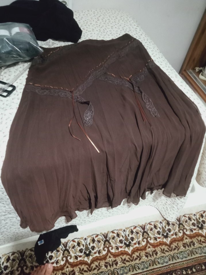 Bohem Tarzı Uzun Kahverengi şifon etek