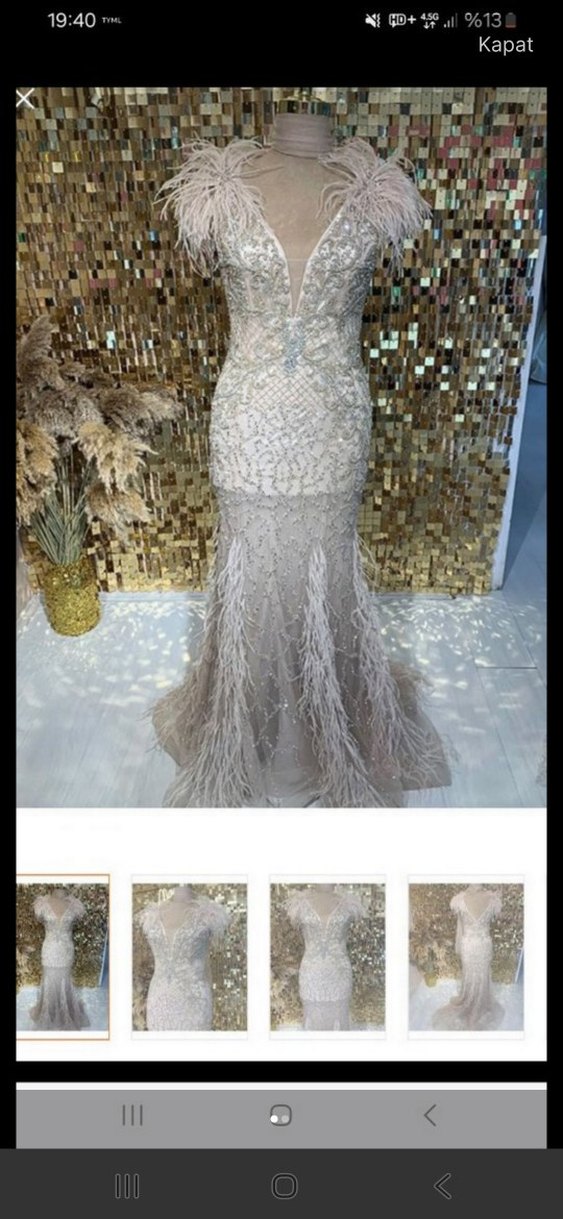 Bohem Tarzı V Yaka Kolsuz Balık Gelinlik