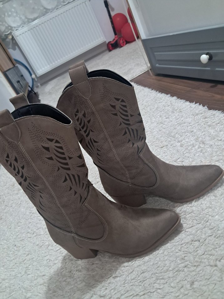 Vizon süet kadın botları, kama topuklu ve nakışlı desenlerle bohem tarzını yansıtıyor. Günlük kullanıma uygun rahat bir model. hiç kullanılmadı numara küçük geldiği için giyemedim