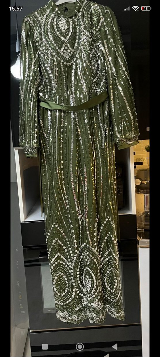 Bohem tarzı, yılan desenli, triko kumaştan uzun ve vücuda oturan elbise. Balıkçı yaka ve uzun kolludur, parti için uygundur. Dar kalıp