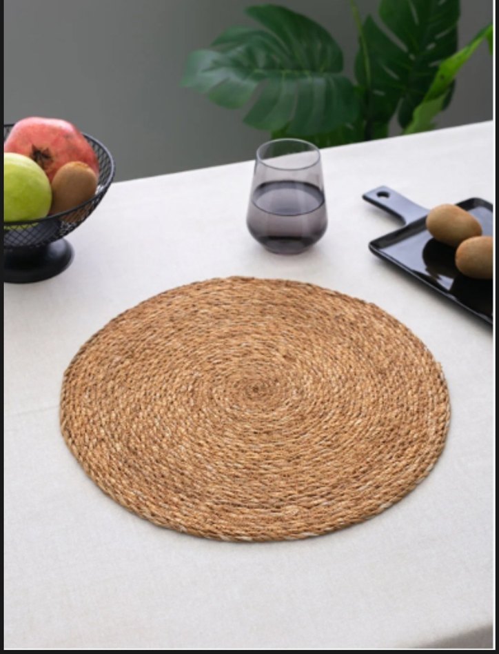Yuvarlak, kahverengi, hasır dokulu bohem tarzı Amerikan servis, masanıza doğal bir dokunuş katar.4 lu fiyatı