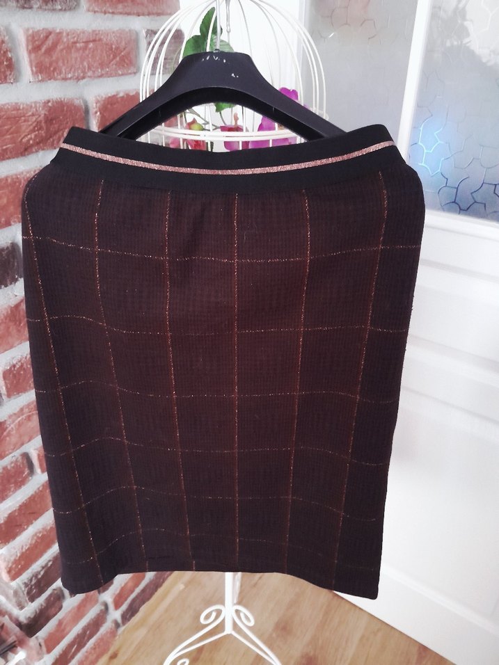 Örme, gevşek kesim kahverengi kareli deseni ve midi boyu ile bohem tarzını yansıtır. Günlük kullanıma uygun, rahat ve şık bir parçadır.