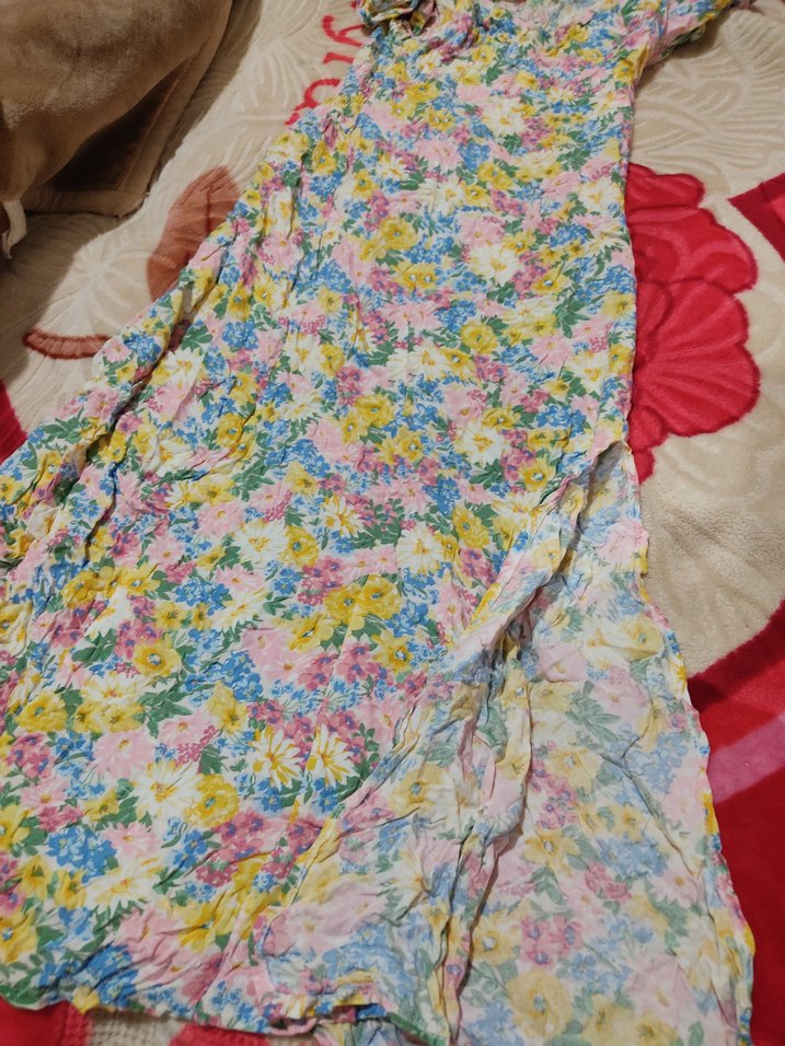 Bohem Uzun Bağlama Desenli Kadın Elbise yandan yırtmaçlı