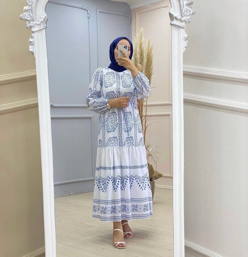 Bohem Uzun Beyaz Bağlama Desenli Elbise