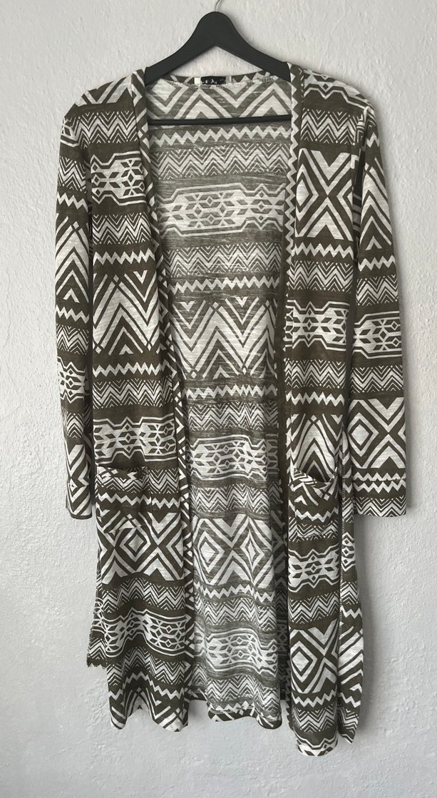 Kuşaklı desenli uzun hırka.