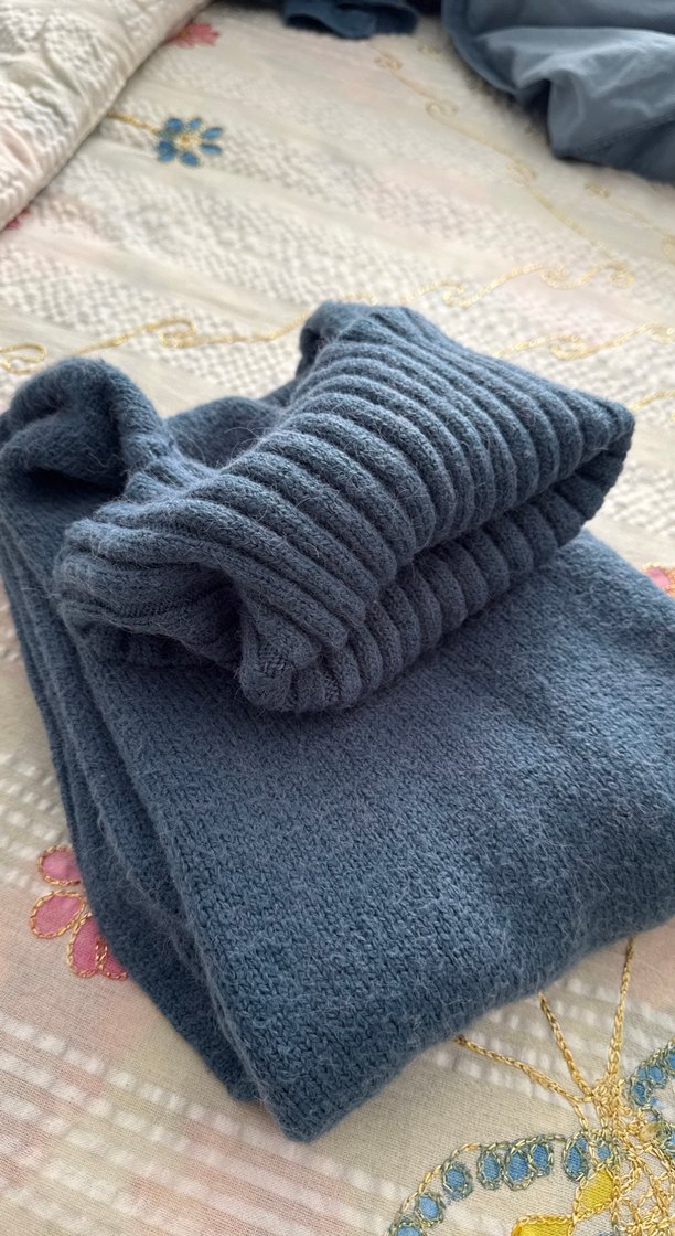 Bohem tarzda, uzun kollu ve boğazlı, gri-tonlarında, düz örme triko kazak. Rahat ve sıcak dokusu ile günlük kullanıma uygun.