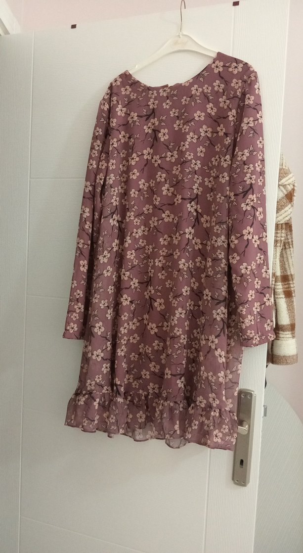 Bohem tarzı, uzun kollu, pastel mor çiçek desenli, bol kesim tunik