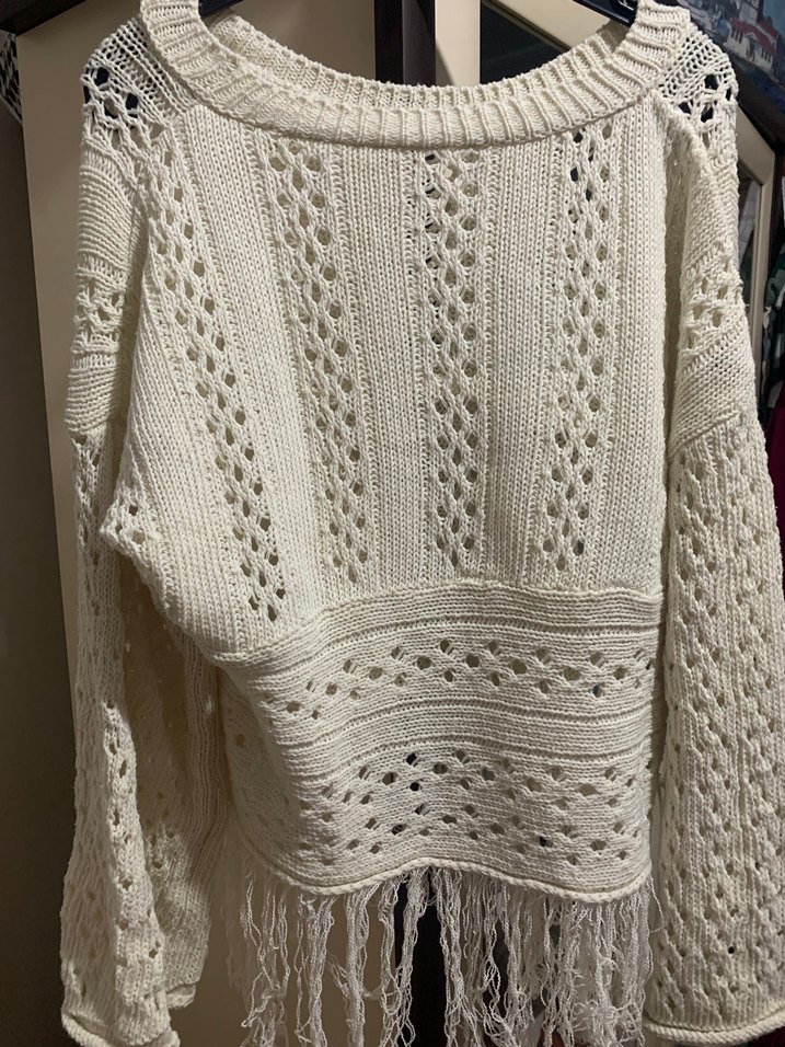 Bohem tarzda, uzun kollu ve yuvarlak yakalı kadın kazak. Örgü, bol kesim, midi boy ve püsküllü detaylara sahip rahat ve gündelik kullanıma uygun gri kazak. Standart beden hiç giymedim.