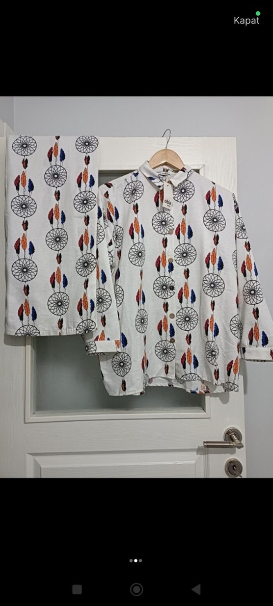 Bohem tarzda, uzun kollu, yuvarlak yakalı ve bol kesim pamuklu gömlek. Çok renkli batik desenli, düğmeli detaylara sahip, günlük kullanıma uygun.