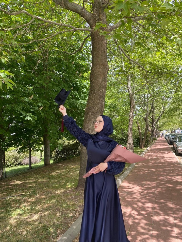 Bohem Uzun Kollu Tesettür Mezuniyet Elbisesi