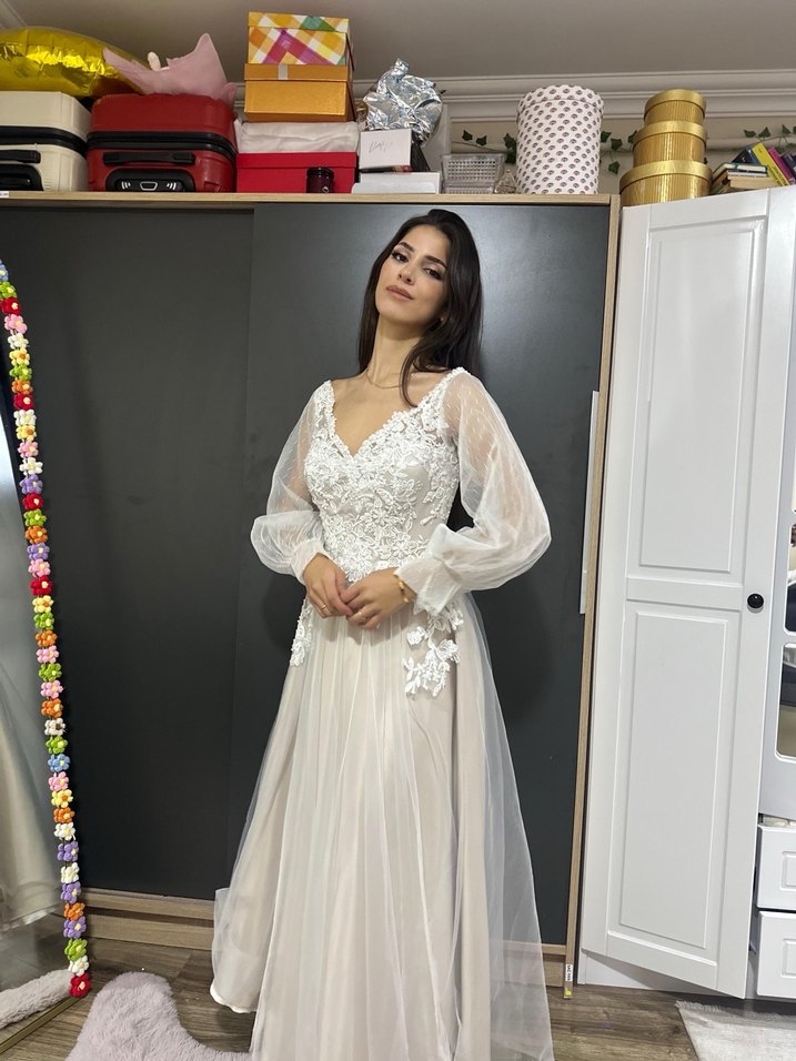 Bohem Uzun Kollu V Yaka Gelinlik nişanlık nikahlık