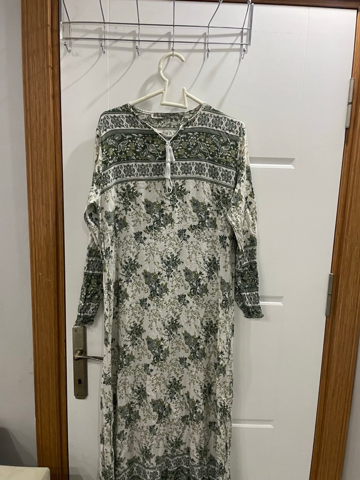 Bohem Uzun Kollu V Yaka Pamuk Elbise