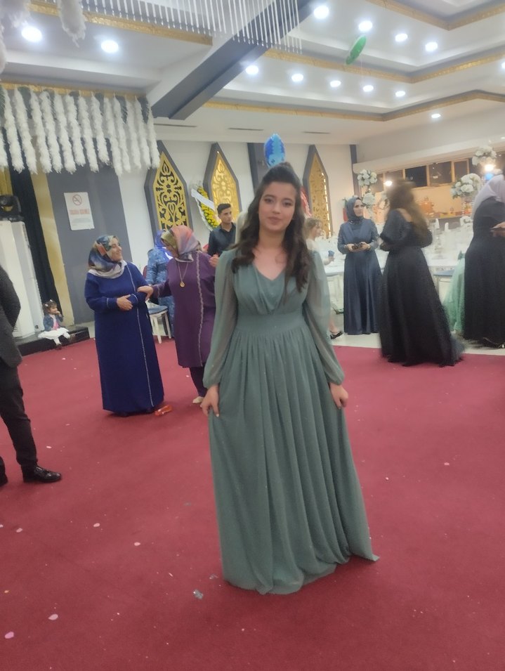 Khaki renkte uzun, drapeli, V yakalı abiye kullanmadığım için satıyorum sadece sadece 1 kere giydim