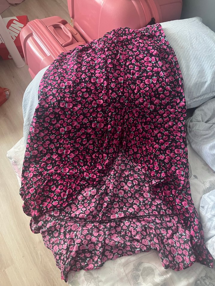 Uzun, vücuda oturan , koyu pembe tie-dye desenli ve drapeli tasarıma sahiptir. Bohem ve retro tarzlar için uygundur.