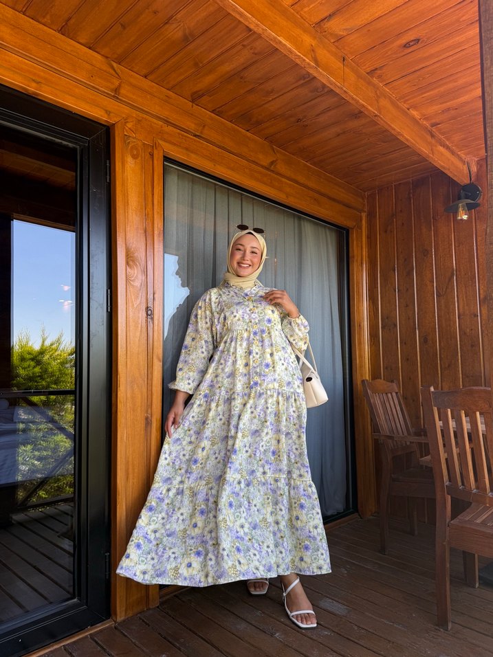 Bohem Uzun Sarı Pamuklu Elbise