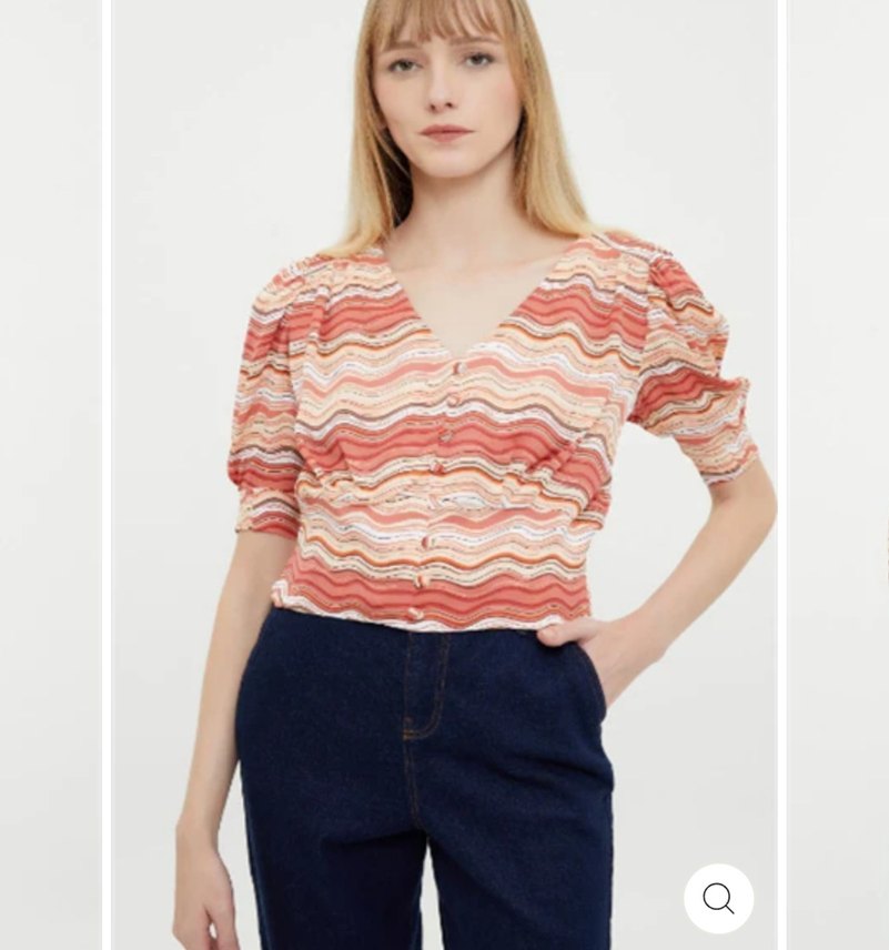 Bohem V Yaka Düğmeli Kısa Kollu bluz