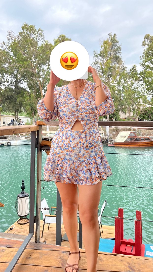 Bu hafif, çok renkli mini elbise, bol kesim, V yaka ve ince askılı kollara sahiptir. Fırfır detayları ve batik desenleriyle açık hava etkinlikleri için uygundur. Yaz tatili için mükemmel tek bir kombin yaptım şifon yaz konsepti içim gitmiştim kusursuz güzel 38 bedendir ama 40 bedende rahatlıkla giyer ben 40 ım