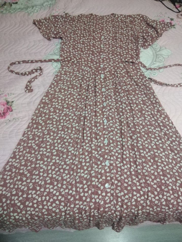 Bohem tarzda, V yakalı ve dökümlü uzun elbise. Yumuşak sentetik kumaştan, bol kesim, pastel kahverengi tonlarında, askılı kollu, günlük rahatlık sağlar.