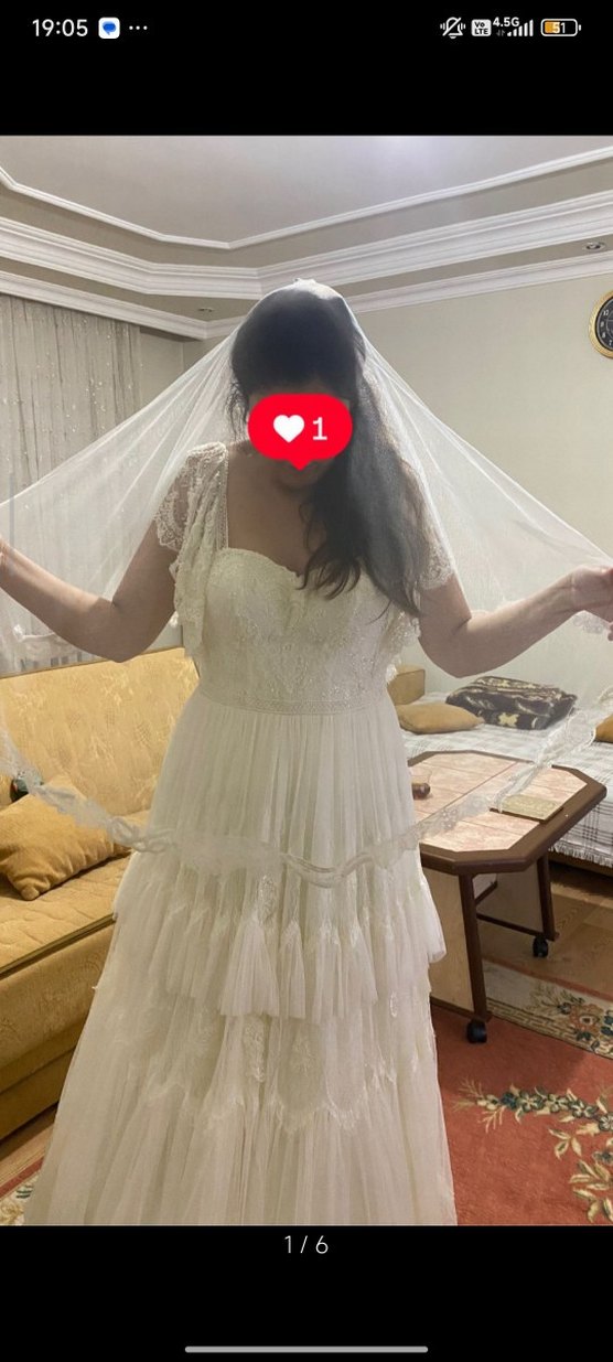 Bu beyaz A kesim gelinlik, V yakalı ve askılı kollu, vücuda oturan bir kesime sahiptir. Bohem tarzda, midi boyda, retro ve hippie görünüme uygundur. 40-42 beden uyumludur. Tarlatan tek daire ile ve duvağı ile gönderilecektir. 1 defa giyildi ve kuru temizlemesi de yapıldı. Görselde tarlatansız çekildi. Ekru renktir. KURU TEMİZLEMESİ VAR . Güncel fiyatı da eklenmiştir, mediha cambaz gelinliktir, Önündeki v yaka dantel çıkarılmıştır , görsel eklenmiştir !!!Tarlatan ve duvak ile gönderilecektir. Kuru temizlemesi yapılmıştır. Kılıfı ile gönderilecektir. Görseli eklenmiştir Şu an güncel fiyatına Trendyoldan bakabilirsiniz. 90 bin bandındadır.