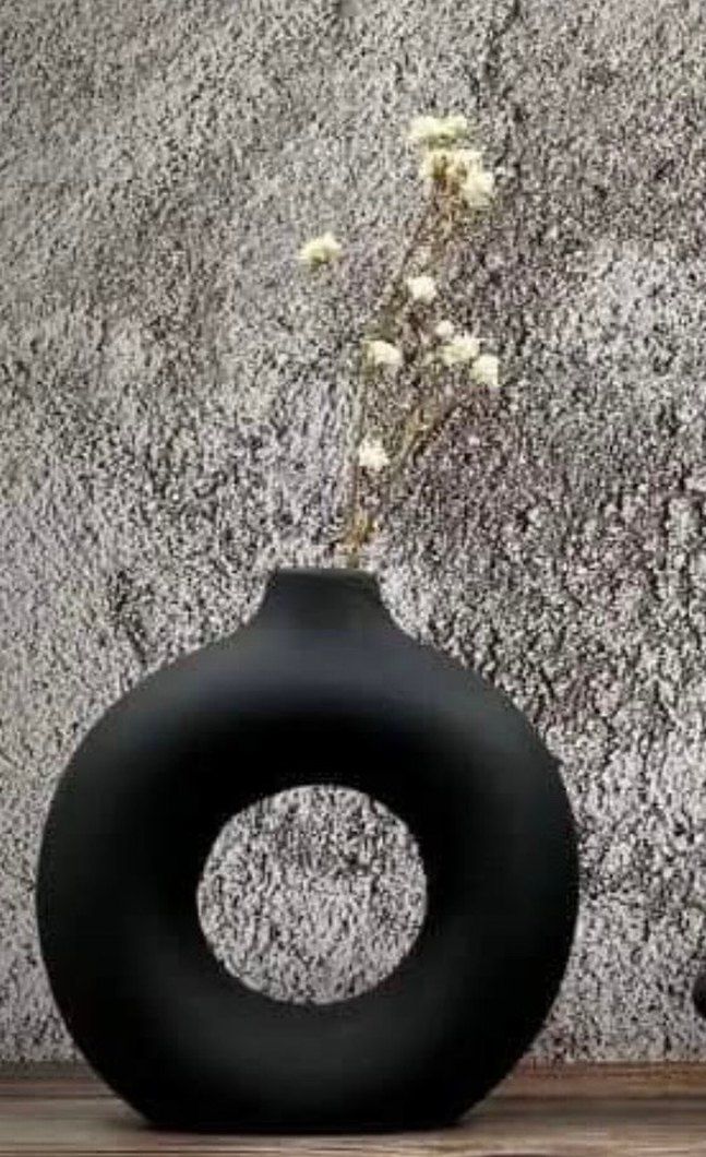 İkili bohem vazo 21 cm büyüklükte orta olan 18 cm bayağı büyüktür ikili fiyattır istenilen renkte tapılır su bazlı verniklidir parlaktır Dairesel boşluklu siyah mat yüzeyli dekoratif vazo, kuru çiçekler için uygundur. Modern tasarıma sahiptir.