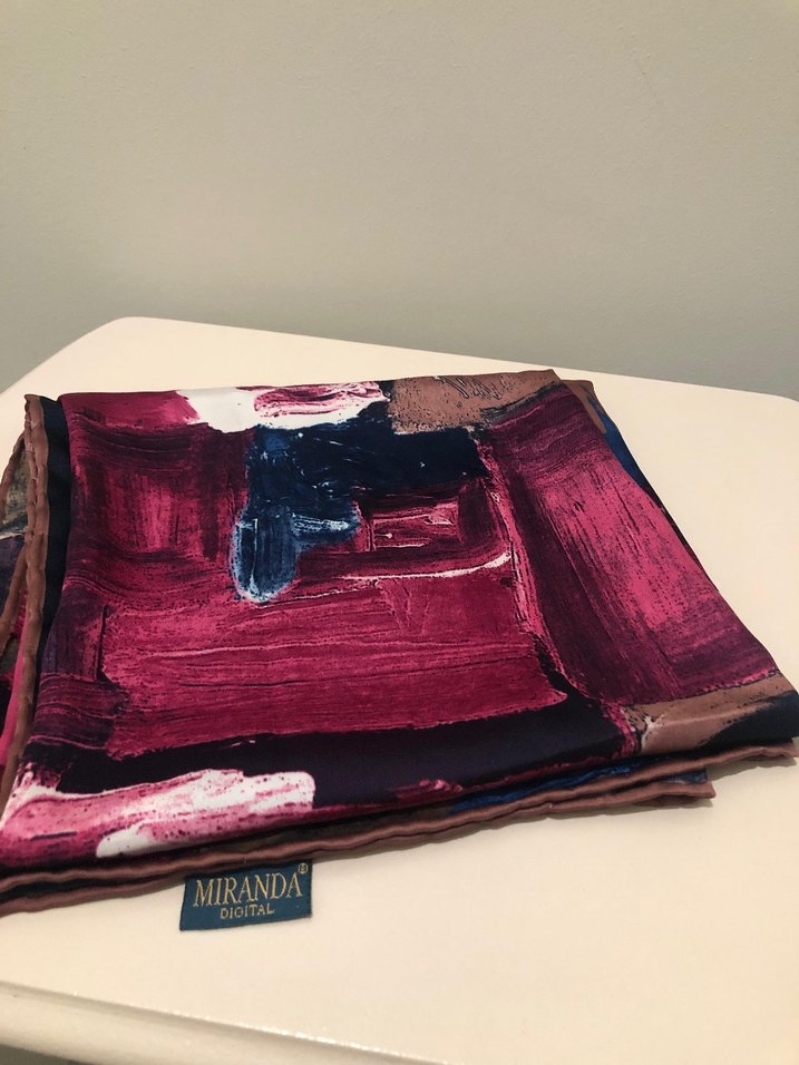 Bordo renkli, ipeksi dokulu bu kadın eşarp bohem vintage tarzda ve drapeli tasarıma sahip. 'MIRANDA' markalıdır, moda tutkunları için ideal.