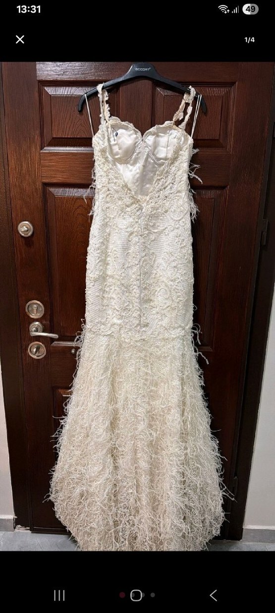 Bohem Vintage Krem Uzun Straplez Gelinlik
