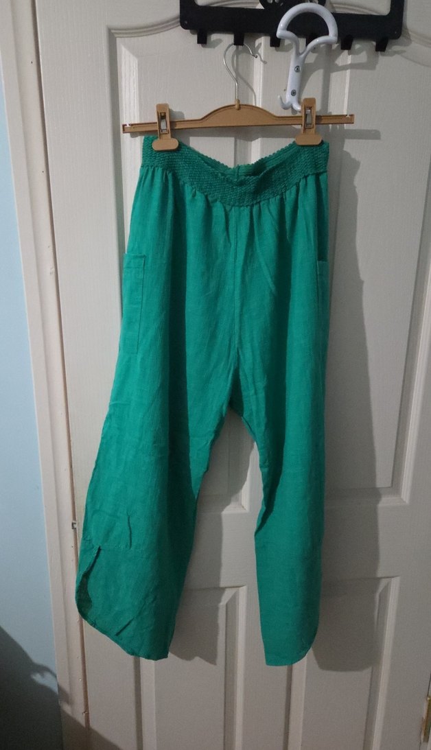 Bohem Yeşil Keten Salaş Midi Pantolon