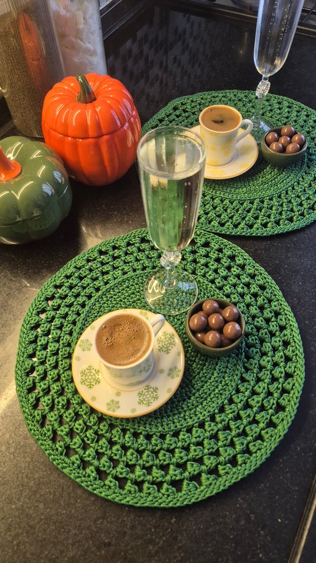 Koyu yeşil, nakışlı ve bohem tarzda, dokulu desenli supla seti, masanıza sıcaklık katmak için ideal. ️ adet fiyatı 200 tl