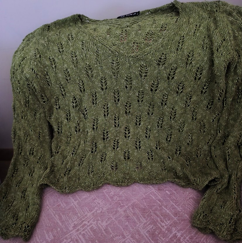Bohem Yeşil Örgü crop Kadın Kazak