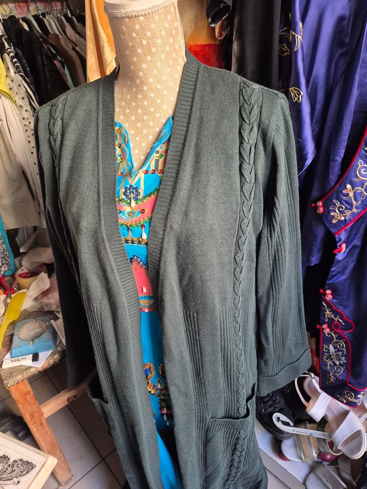 Bohem tarzda, bol kesim ve uzun boy yesilörgü hırka. V yaka ve uzun kollu, günlük kullanıma uygun. l veya xl uygun