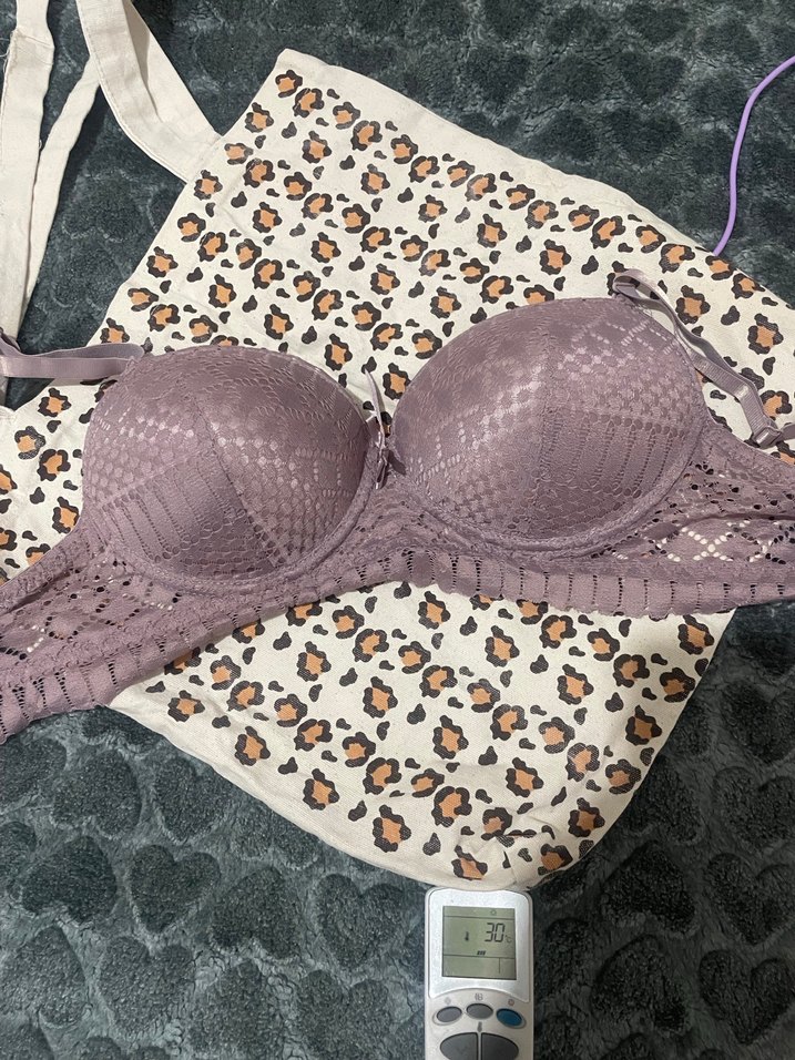Bohem tarzda, yılan desenli ve dantelli mor sütyen. Normal uzunlukta ve rahat bir yapıya sahip. 80b beden